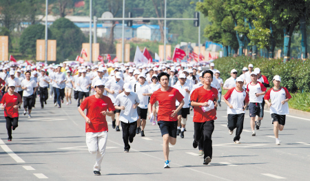 昨日,梅溪湖畔,近万名健身爱好者相约而至,用行走6公里路程这种最简单、最有效的运动方式来倡导健康生活。 李锋 王志伟 摄影报道
