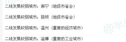 第二部分是8个二线发达城市,其中,济南和青岛分列第三和第五名。第三部分是15个二线中等发达城市,包括武汉、沈阳、成都、西安,山东省烟台市也跻身其中。最后一部分是6个二线发展较弱城市,包括合肥、南昌、南宁、昆明、温州、淄博。
