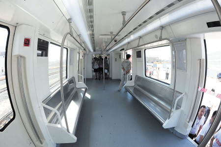中野科技与中国南车集团签订了关于新型轨道交通车厢保温防火材料联合研发的协议,今后地铁车厢将用上其保温防火材料。图为2013年8月9日,地铁2号线首辆车亮相长沙,市民“一乘为快”。余志雄 摄