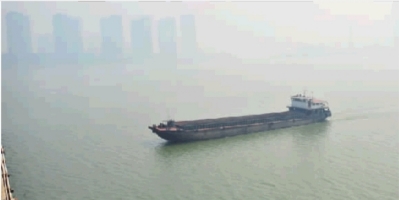 10月23日,一艘运输船在长沙福元路大桥下经过,江边的高楼被雾霾笼罩。记者 田超 摄