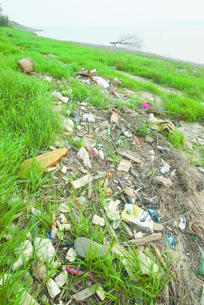 10月26日,长沙市开福区新港镇,湘江岸边垃圾遍地。