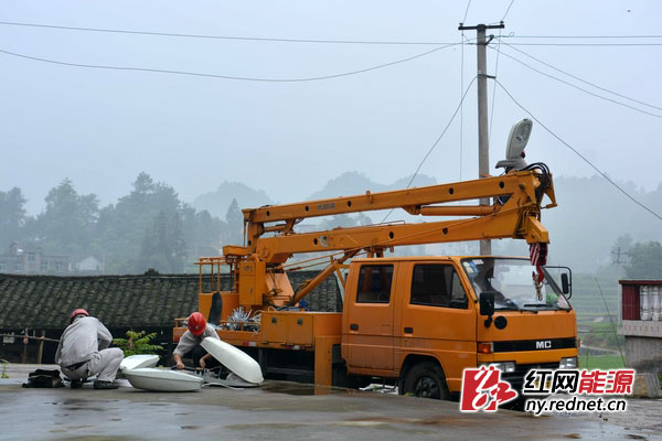 当安装队伍赶到高坪村时,天已经暗下来了,带队的检修班班长陈世友对第二天的工作进行安排后,大家就早早休息了。第二天,天刚蒙蒙亮,还不到6点,全体施工人员就在陈世友的带领下开始了路灯安装工作。上午8时,天公不作美,突然下起了雨,为了保证按照计划完成安装任务,依旧保持雨中作业。下午5点30分,15盏路灯全部安装完毕,随着合闸的声响,传来了村民们欢呼的声音:“亮了,亮了!”