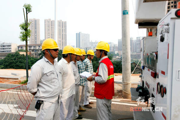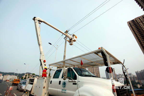 “这是咱们今天第三个带电作业现场。”本次工作负责人肖荣贵介绍,带电作业班昨天刚刚从涟源市完成作业任务赶回娄底,高温天气使得城区电网负荷“升温”,平均每天会有多个不同的带电抢修作业现场。