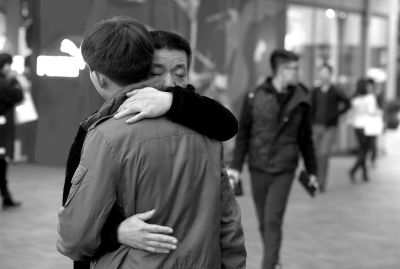 嫌疑人自首前与儿子拥抱。京华时报记者蒲东峰摄