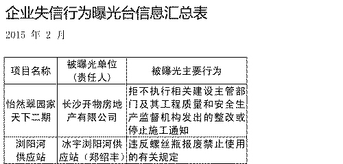 长沙晚报讯(记者 章盛莉)市住建委今日曝光两起住建领域企业不诚信行为。被曝光的相关责任单位和责任人将被记入信用“黑名单”并受到相应处罚。如果您发现身边的建设工地、房产开发、物业服务、燃气供应等住建领域的企业和从业人员出现不诚信行为,欢迎拨打本报热线96333提供线索。