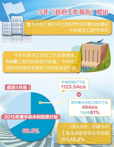 ——在建工程建设步伐加快,湖南涔天河水库等一批工程加快建设,陕西引汉济渭、西江大藤峡水利枢纽、贵州夹岩水利枢纽工程等去年新开工项目全面实施。