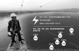 8月上、中旬,华北、华东、华中、西北及南方区域的用电量均保持正增长,尤其是华东、华中区域日均用电量增长到超过6.5%,对全国发用电增长的贡献率达81.3%,合计拉高全国发用电增速2.86个百分点。