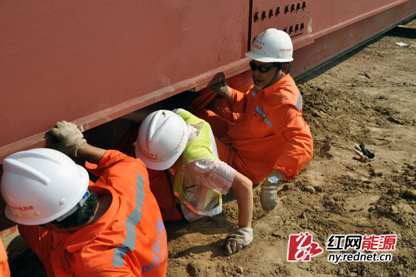 作为高速铁路简支箱梁架设项目经理,舒国强(右一)每次都会身先士卒,苦干,实干,巧干。