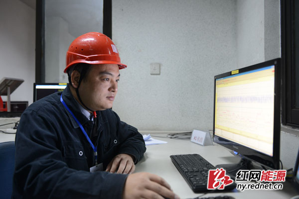 大唐集团湘潭发电公司控制部专工胡文龙在工作中。