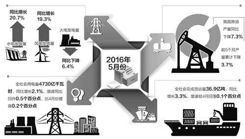 “煤电油运”是衡量宏观经济运行的重要指标。国家发展改革委秘书长李朴民说,5月份发用电量继续保持小幅增长,通过发电、用电数据的变化,可以反映出经济结构调整和转型升级效果继续显现。