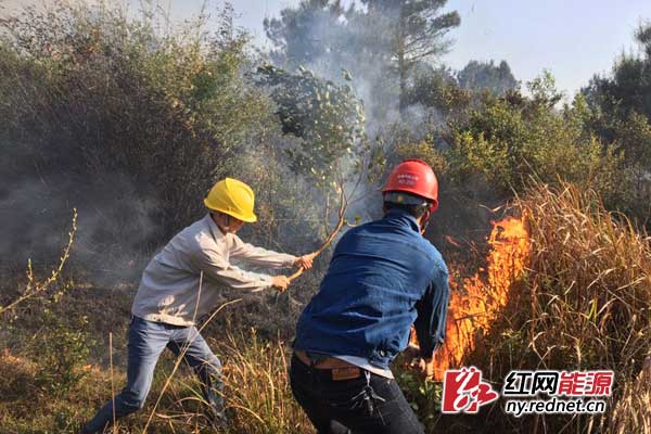 电力员工正及时处置山火隐患